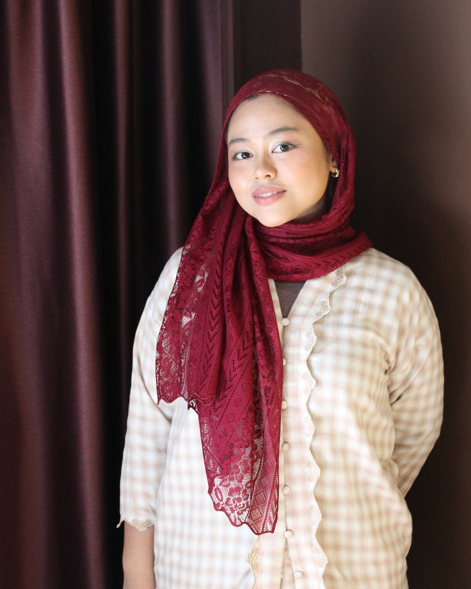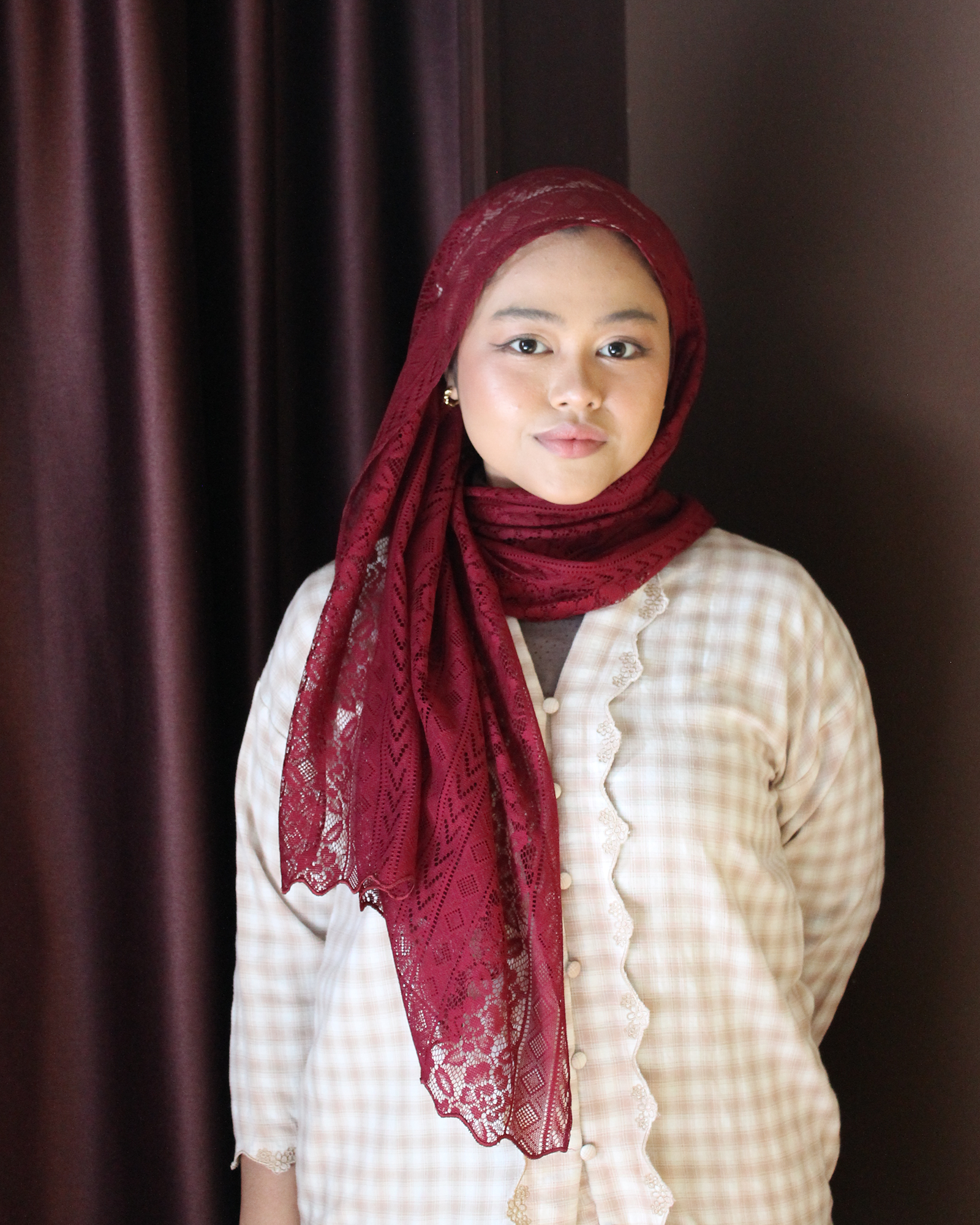Lace shawl with babyseam finishings on two long sides and embroidery finishings on two short sides of the shawl